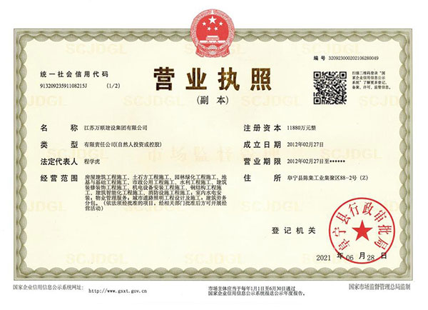 江蘇萬順建設集團于2012年2月經鹽城市阜寧縣工商行政管理局批準設立,目前已形成建筑施工總承包、建材銷售等綜合性、多元化企業(yè),也是一家擁有現(xiàn)代經營管理模式、追求可持續(xù)發(fā)展的企業(yè)。